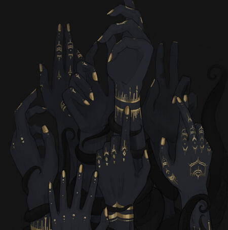 Cuando la diosa estuvo dentro de Nyané, sus pupilas se volvieron completamente blancas y en su cuerpo se dibujaron líneas del mismo color, brillantes, conformando garabatos.