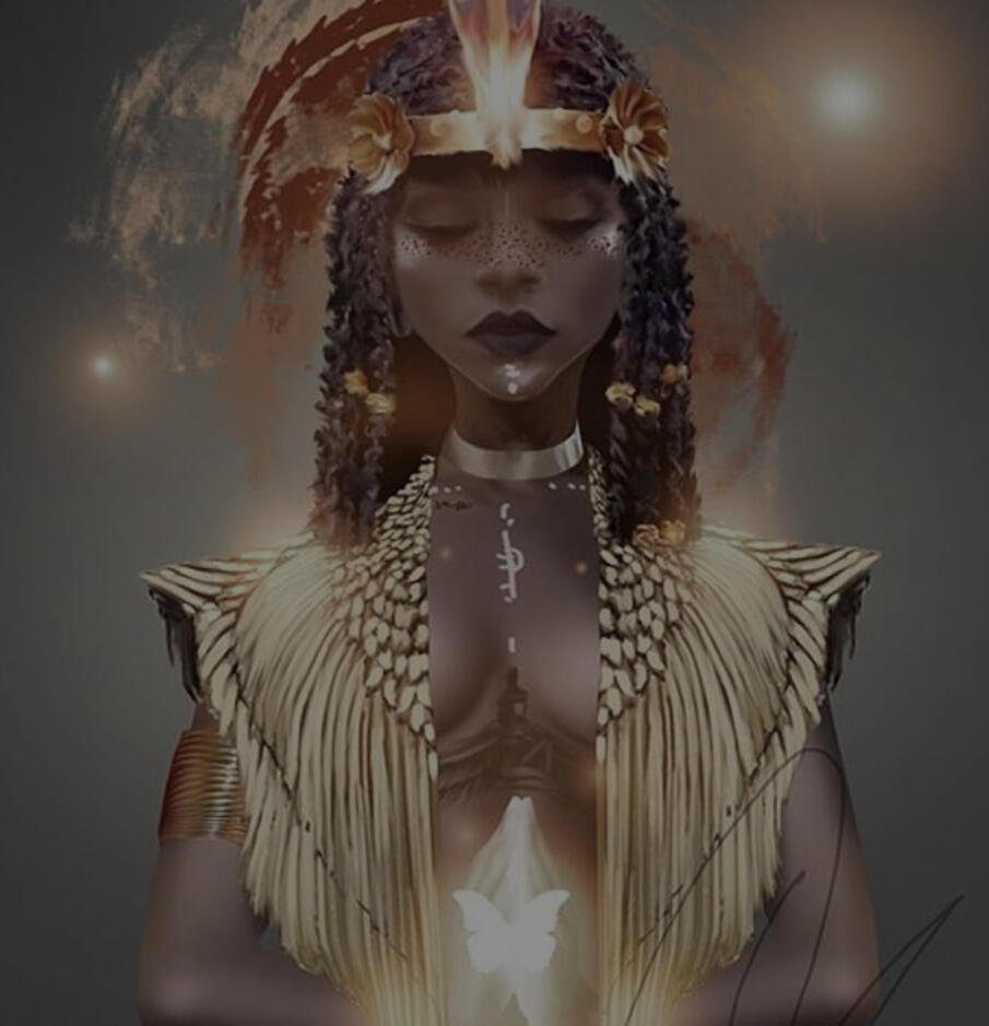 ➠ Nyané es la primer líder mujer desde la creación de la tribu. Los habitantes la asocian con la diosa Oshun de la sensualidad, fertilidad, alegría y belleza.